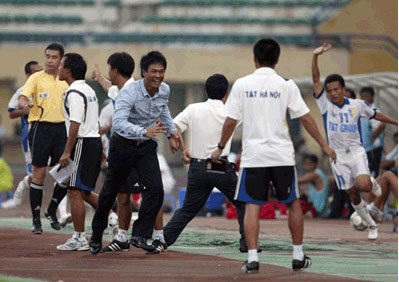 Tướng trẻ - thất bại và thành công Một HLV “già” từng đưa ra một câu nói “bất hủ” về cái nghiệp làm tướng ở V-League: “Ghế HLV có 4 chân thì cầu thủ nắm tới 3 chân”. Đã là HLV thì ở đâu cũng phải chịu đủ thứ áp lực, nhưng ở Việt Nam thì ngoài việc chịu áp lực ra, ngoài làm chuyên môn, HLV còn phải làm đủ các thứ việc “linh tinh” khác. HLV V-League là những con người “đa di năng”, vừa phải tài lại vừa phải “khôn”, vừa phải “khéo”. Ở một môi trường như bóng đá Việt Nam, HLV đôi khi còn phải làm luôn công việc “bảo mẫu”. Bản thân từ “huấn luyện viên” là người chỉ đạo đội bóng về chuyên môn, nhưng HLV V- League có người còn phải đi “rình” cầu thủ đánh bạc, uống rượu, trước trận đấu có khi còn phải đi thu ĐTDĐ phòng cầu thủ móc nối ra bên ngoài “làm bóng”. Ngay chính Huỳnh Đức cũng không ít lần phải “a lô” gọi cầu thủ về khi họ đã…nhậu xỉn. Rồi bao nhiêu mối quan hệ “đối nội” trong đội bóng, đối ngoại ở bên ngoài. Chính vì thế, tướng trẻ khi bước chân vào làm bóng đá phải đối mặt với vô vàn khó khăn, ngoài sự nghi ngại ban đầu về năng lực chuyên môn. Chẳng phải bầu nào cũng như bầu Hiển, luôn dành sự tin tưởng cho những ông thầy trẻ, gạt bỏ ngoài tai những sự nghi ngờ “nó thì liệu có cầm nổi đội không”. Nhưng cái khó lại “ló cái khôn”, chính những sự khó khăn lại là cơ hội để những tướng trẻ thể hiện mình. Huỳnh Đức, Công Minh, Hữu Thắng…có cái lợi là họ đã sống, đã gắn bó, nếm đủ đắng cay buồn vui trong môi trường bóng đá Việt Nam. Những “mánh mung”, những “trò mèo” đi đêm, rồi cả những quan hệ lằng nhằng phức tạp của bóng đá họ đều quen thuộc hết. Là một cầu thủ sống trong đội bóng nhiều năm, họ cũng hiểu rõ về tâm lí cầu thủ, hiểu rằng không đoàn kết thì chỉ có…chết. “Trưởng thành trong thời bóng đá bao cấp”, “làm HLV trong thời bóng đá doanh nghiệp”, những người bản lĩnh, nhanh nhạy, thích ứng kịp thì thành công là điều tất yếu.